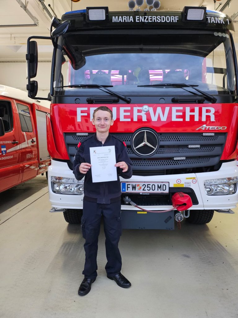 Am 20. September 2025 absolvierte ein Mitglied der Freiwilligen Feuerwehr Maria Enzersdorf das „Abschlussmodul Truppmann“ im Feuerwehrhaus Vösendorf. Diese Prüfung schließt die Basisausbildung ab, welche